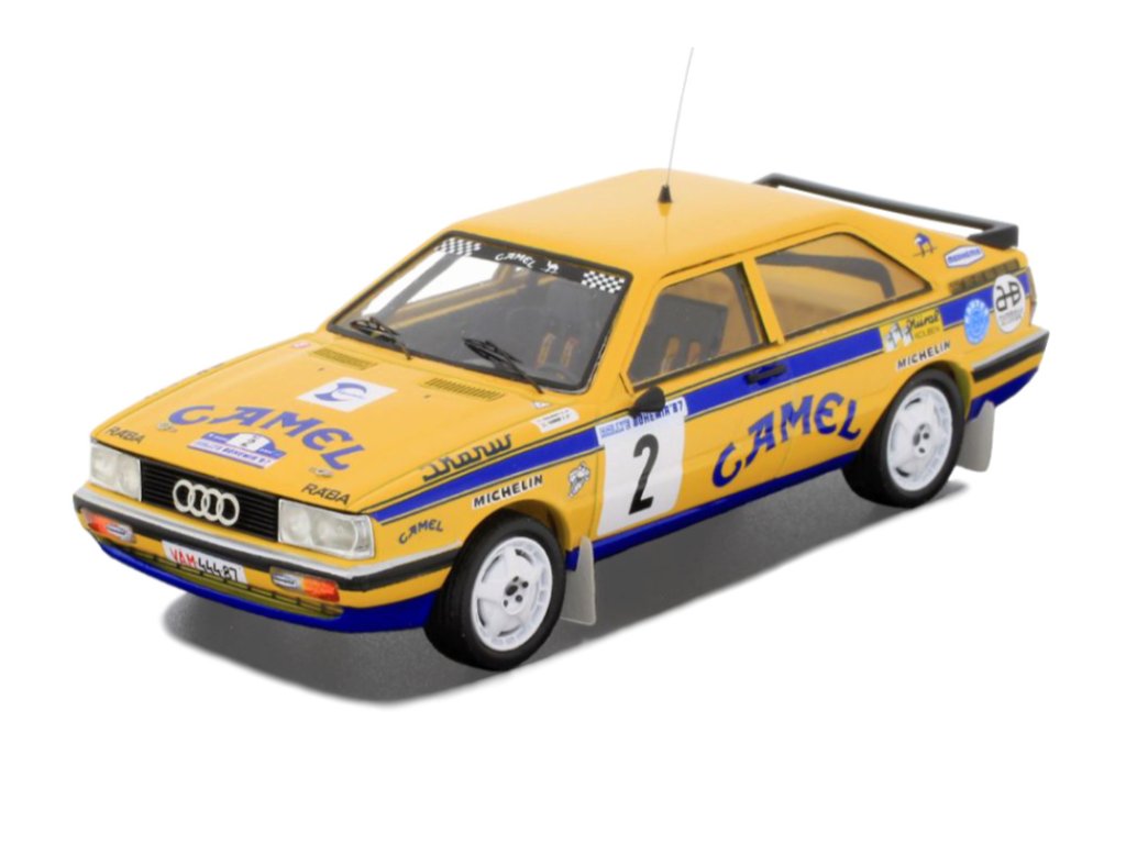 Model soutěžního automobilu Audi Coupé Quattro v měřítku 1:43, jehož zpracování odpovídá tradičně vysokým standardům značky Troféu. Hotový (sestavený) sběratelský model. Určen k vystavení. Limitovaná série.