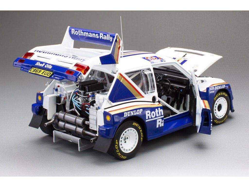 Model soutěžního automobilu MG Metro 6R4 v měřítku 1:18, jehož zpracování odpovídá tradičně vysokým standardům značky Sun Star. Otevíratelná kapota a dveře, řiditelná přední náprava. Hotový (sestavený) sběratelský model. Určen k vystavení.